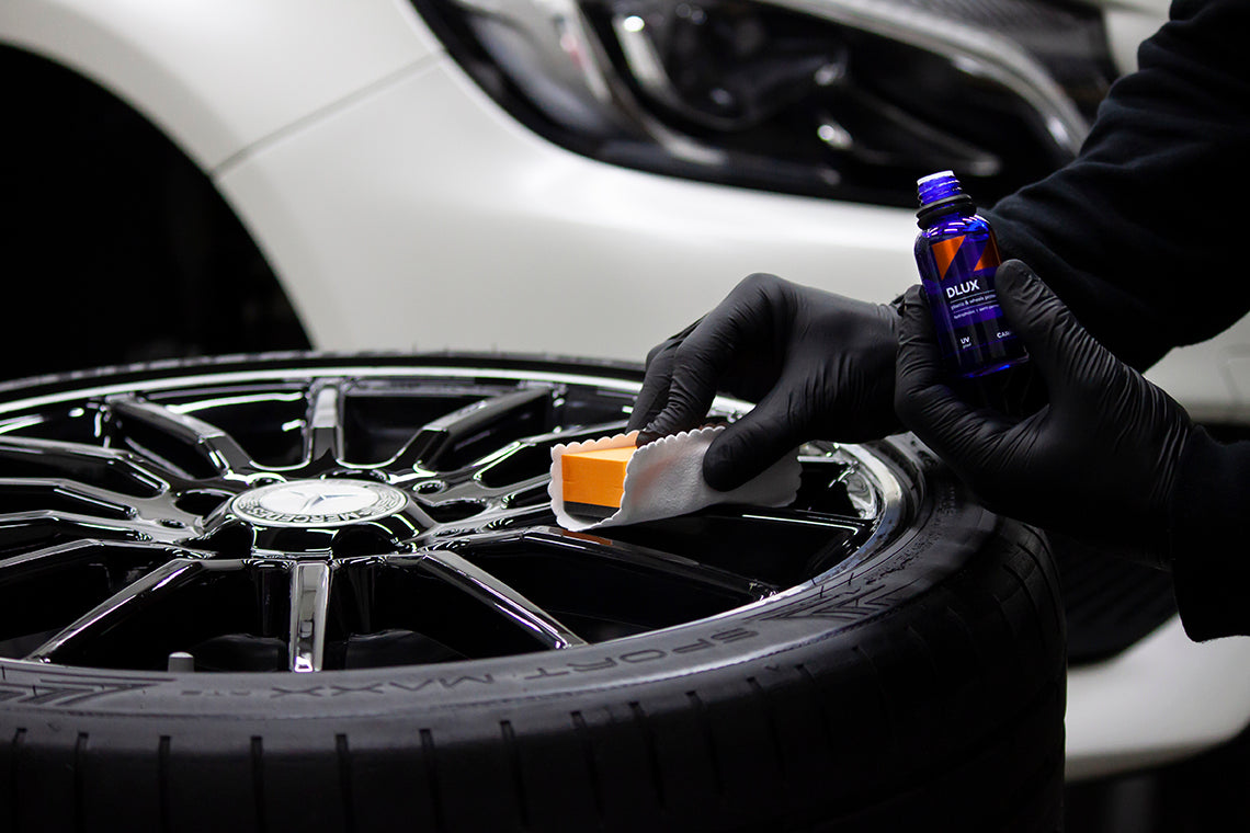 De velgen worden gedemonteerd en grondig schoongemaakt. Vervolgens wordt de C.Quartz DLUX coating aangebracht op de buiten- en binnenkant van de velgen, alsook de remklauwen. De hydrofobe eigenschappen (water- en vuilafstotend) van deze coating voorkomen dat het hardnekkige remstof zich vast zet op de velgen. Velgen polieren kan steeds tegen meerprijs, afhankelijk van type velg. Gemiddelde levensduur: tot 12 maanden